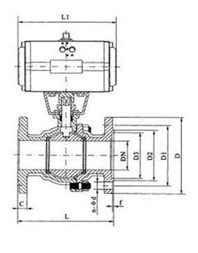 氣動O型切斷球閥產(chǎn)品結構圖: