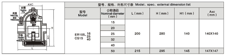 鐘型浮子式蒸汽疏水閥主要零件材料和性能參數(shù) Main parts and specifications