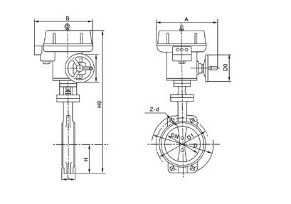 電動(dòng)對(duì)夾式軟密封蝶閥外形尺寸