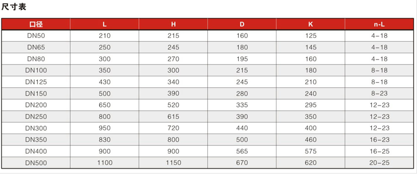 三、手動奧襯管夾閥(GJ41X-6L)主要尺寸表