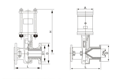 常開(kāi)型氣動(dòng)管夾閥(GJ6K41X-6L)主要外形連接尺寸(mm)