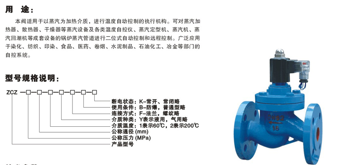 『中溫蒸汽電磁閥』專業(yè)生產(chǎn)廠家,由正鋼自主生產(chǎn)的【電磁閥】質(zhì)量可靠、價(jià)格合理、售后服務(wù)完善。『中溫蒸汽電磁閥』適用于各種輕重工業(yè)及樓宇管道。正鋼品質(zhì),全球共享!【電磁閥】廣泛應(yīng)用于:化工、石化、石油、造紙、采礦、電力、液化氣、食品、制藥、給排水、市政、機(jī)械設(shè)備配套、電子工業(yè),城建等領(lǐng)域。