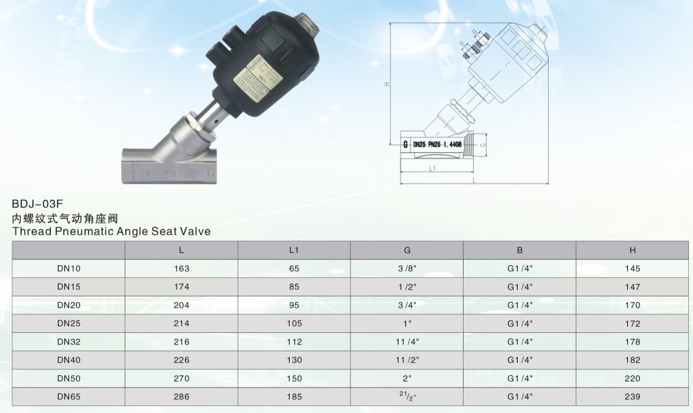 內(nèi)螺紋氣動(dòng)角座閥參數(shù):
