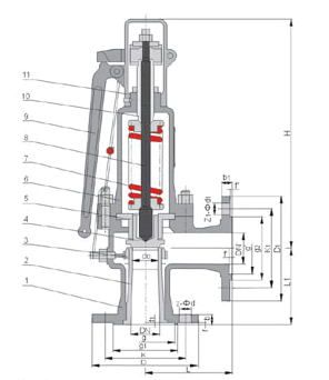 【帶扳手微啟式安全閥結(jié)構(gòu)圖】
