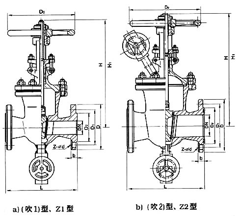 ③Z1仿、Z2仿系列帶吹掃孔閘閥適用于水、蒸汽、煙氣、油品或霧狀、粉末狀、顆粒狀等介質(zhì)的管路上,作為啟閉裝置用,尤其適用于石化行業(yè)輸油和催化裂變系統(tǒng),起啟閉、清洗沖刷管道的作用。