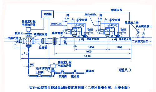 5、減溫減壓裝置安全系統(tǒng):為防止二次蒸汽壓力超過規(guī)定值,自動打開安全閥使多余蒸汽排放,達到減壓和安全保護作用,由于參數(shù)不同,有以下幾種結(jié)構(gòu)形式,由正鋼設(shè)計時選定: