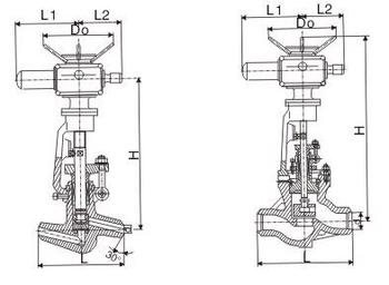 電動(dòng)對(duì)焊截止閥結(jié)構(gòu)尺寸: