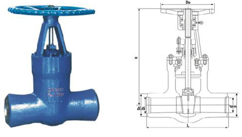 高溫高壓手動(dòng)電站閘閥結(jié)構(gòu)圖: