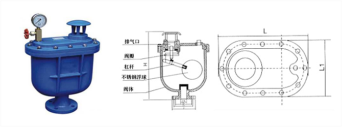 【清水復(fù)合式排氣閥產(chǎn)品簡(jiǎn)介】復(fù)合式排氣閥用于管路上的最高點(diǎn)有閉氣的地方,來(lái)排除管內(nèi)的氣體來(lái)疏通管首,達(dá)到正常工作,如不裝排氣閥,管內(nèi)流動(dòng)的液體會(huì)產(chǎn)生動(dòng)熱引起氣體形成短路,使管道出水容量達(dá)不到設(shè)計(jì)要求,其次,管道在運(yùn)轉(zhuǎn)時(shí)出現(xiàn)停電、停泵管道會(huì)出現(xiàn)負(fù)壓力會(huì)引起管道振動(dòng)或破裂,排(吸)氣閥就迅速反空氣吸入客內(nèi),防止管道振動(dòng)或破裂。【清水復(fù)合式排氣閥原理】當(dāng)水進(jìn)入管道時(shí),塞頭停在定位架下部,進(jìn)行大量排氣,當(dāng)空氣排完時(shí),水進(jìn)入閥內(nèi)把球浮起傳動(dòng)塞頭到關(guān)閉,停止排氣。如管道在正常運(yùn)轉(zhuǎn)時(shí)自然會(huì)產(chǎn)生少量氣體會(huì)聚到管內(nèi)上部,到相當(dāng)程度,閥內(nèi)水位下降,浮球隨時(shí)下降氣體從小孔排出。如出現(xiàn)停電,停泵,管內(nèi)水流空時(shí),管內(nèi)隨時(shí)會(huì)出現(xiàn)負(fù)壓力,浮球順?biāo)陆担蜷_小孔帶動(dòng)大孔大量進(jìn)氣確保管道安全。【清水復(fù)合式排氣閥技術(shù)參數(shù)】1、介質(zhì):清水2、使用溫度:常溫3、閥體:灰鑄鐵HT2004、浮球與塞頭:不銹鋼5、密封材料:丁腈橡膠6、閥體強(qiáng)度打壓:1.5Mpa7、密封試驗(yàn)打壓:0.05-1.1Mpa不漏水【清水復(fù)合式排氣閥結(jié)構(gòu)圖】【清水復(fù)合式排氣閥外形尺寸】【清水復(fù)合式排氣閥主要零部件材料】【清水復(fù)合式排氣閥排氣量表(按每秒1.5-3.0米計(jì)算)】