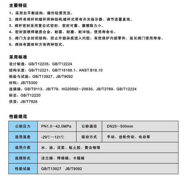 平衡式截止閥采用自平衡式、浮動(dòng)密封座結(jié)構(gòu),其結(jié)構(gòu)新穎、性能可靠。適用于工作壓力≥1.6MPa,工作溫度≤121℃的水、油、泥漿、聚合物、粘土膠、天然氣等管線上,借助流量計(jì)對(duì)介質(zhì)流量實(shí)行精確調(diào)節(jié),同時(shí)可作截止閥對(duì)管線起啟閉作用。