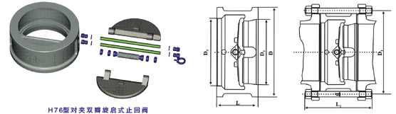H76型對(duì)夾式雙瓣旋啟式止回閥 |