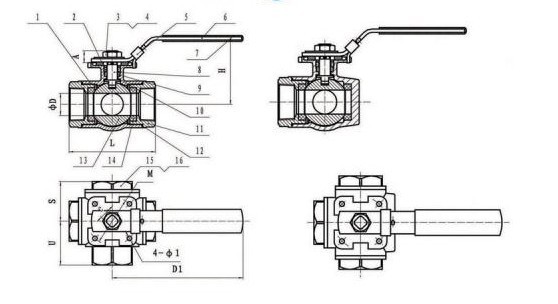 【三通螺紋球閥產(chǎn)品結(jié)構(gòu)圖】